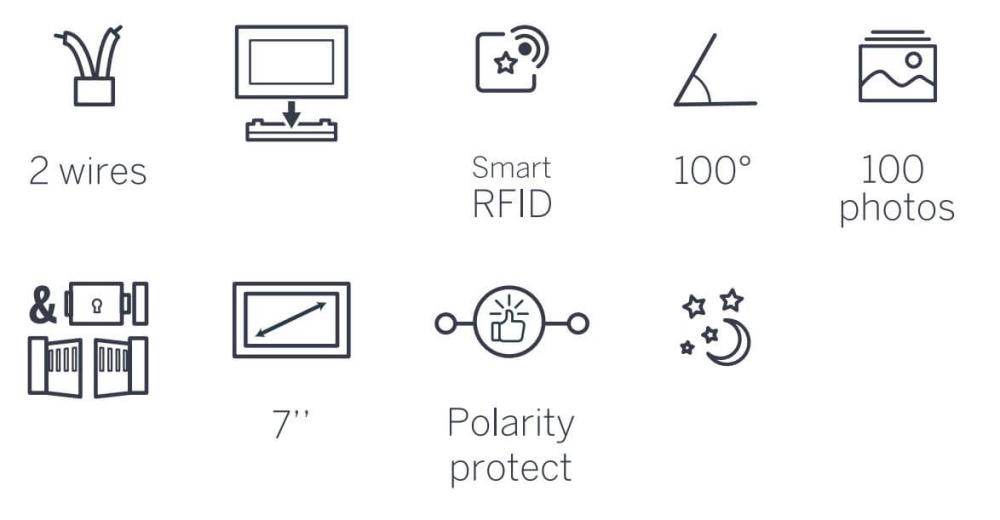 Le Smart Bracket 2 est un visiophone filaire (deux fils) doté d’un système de diagnostic de connexion pour sécuriser son installation. Simple à utiliser avec ses badges RFID. Extensible avec un écran supplémentaire en option.