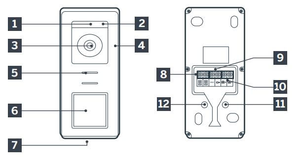 - Bouton d'appel rétro éclairé et zone de lecture des badges RFID