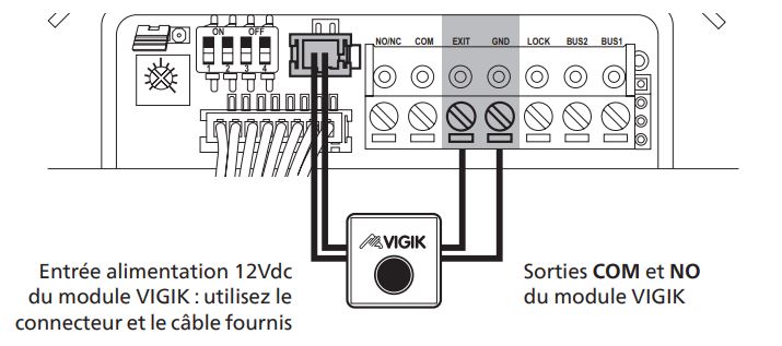 Oui la platine de rue est compatible avec les boitiers Vigik. Le principe est le suivant : vous achetez un boitier vigik et vous le connectez avec la platine de rue comme le montre le schéma suivant :