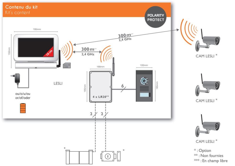 Afin de renforcer votre sécurité, vous avez la possibilité de relier 3 caméras sans fil supplémentaires (ref : 720284) à votre visiophone Extel Lesli.
